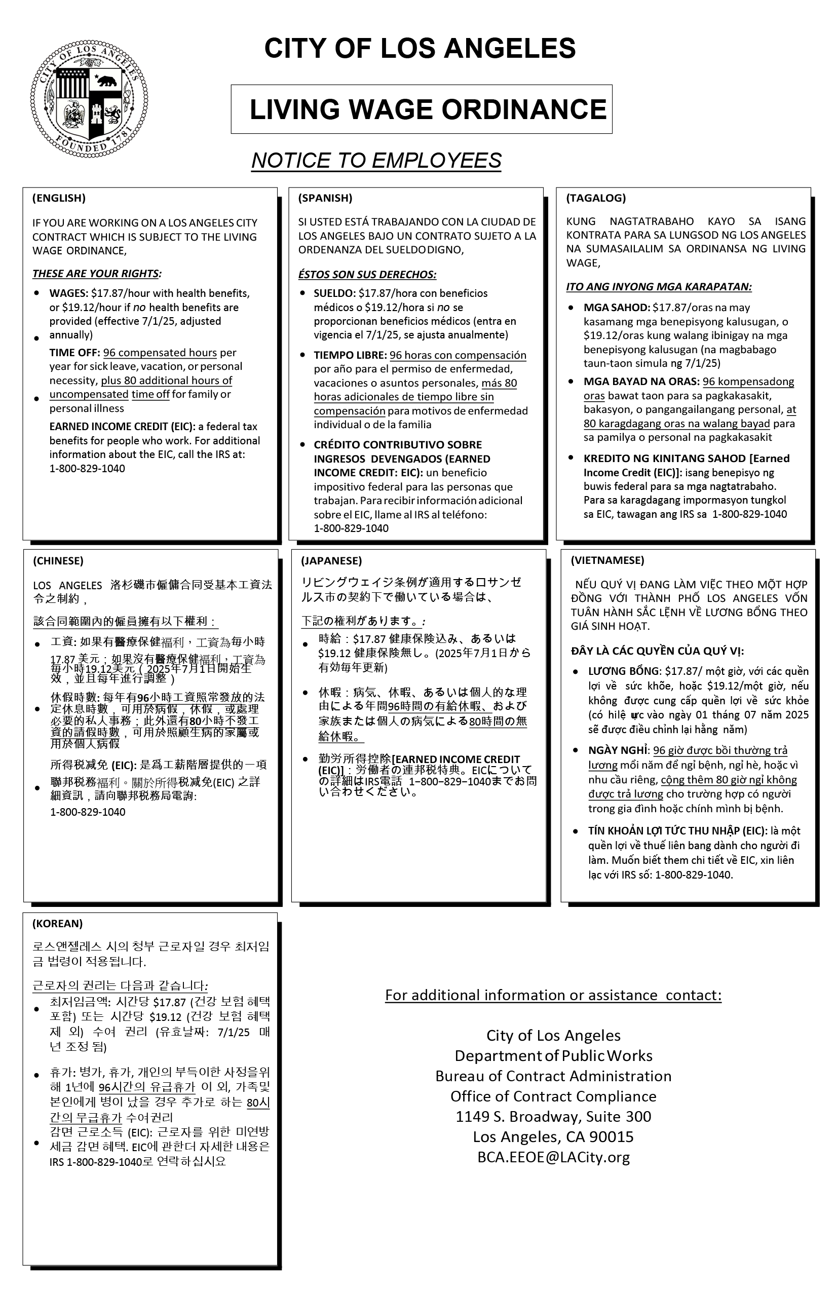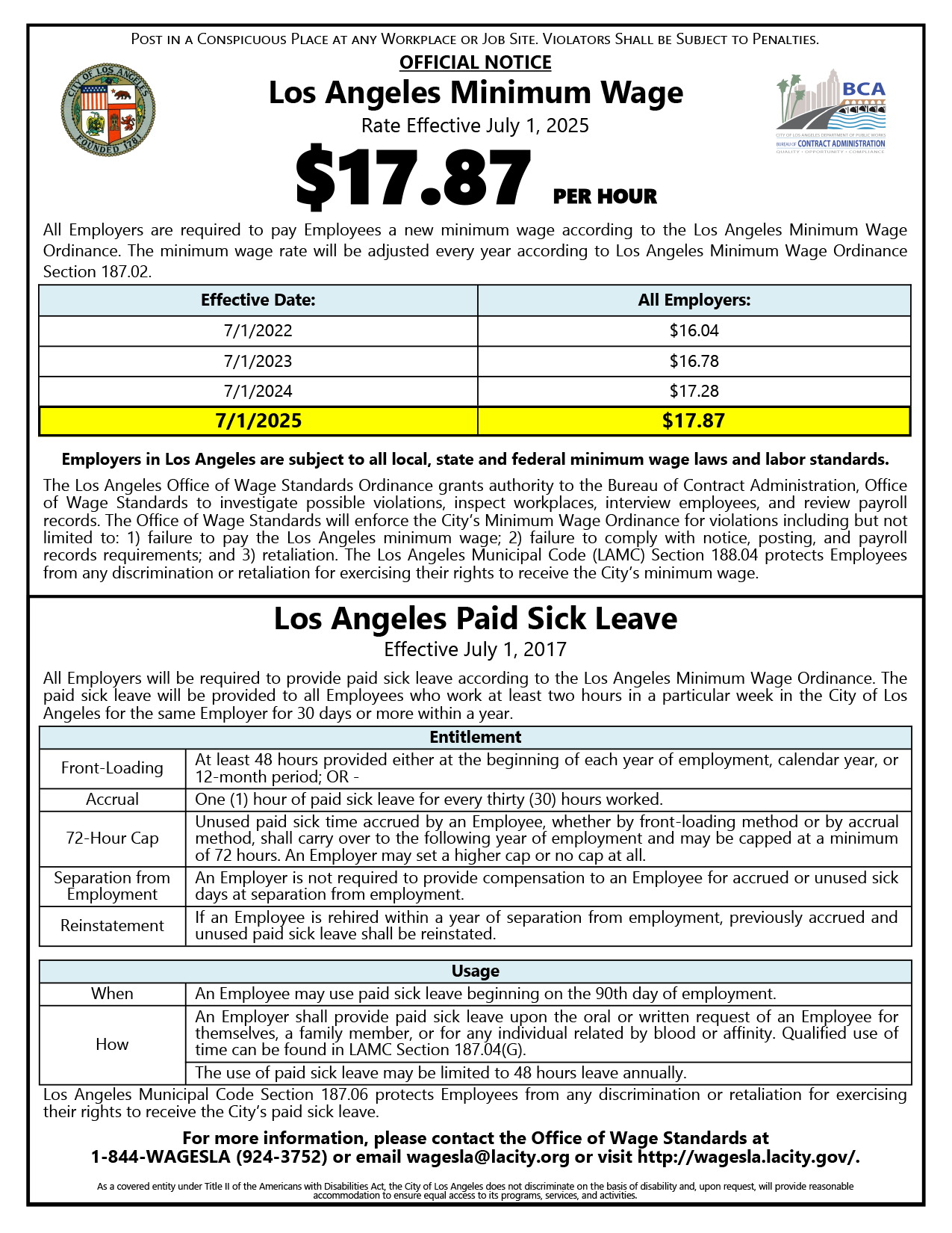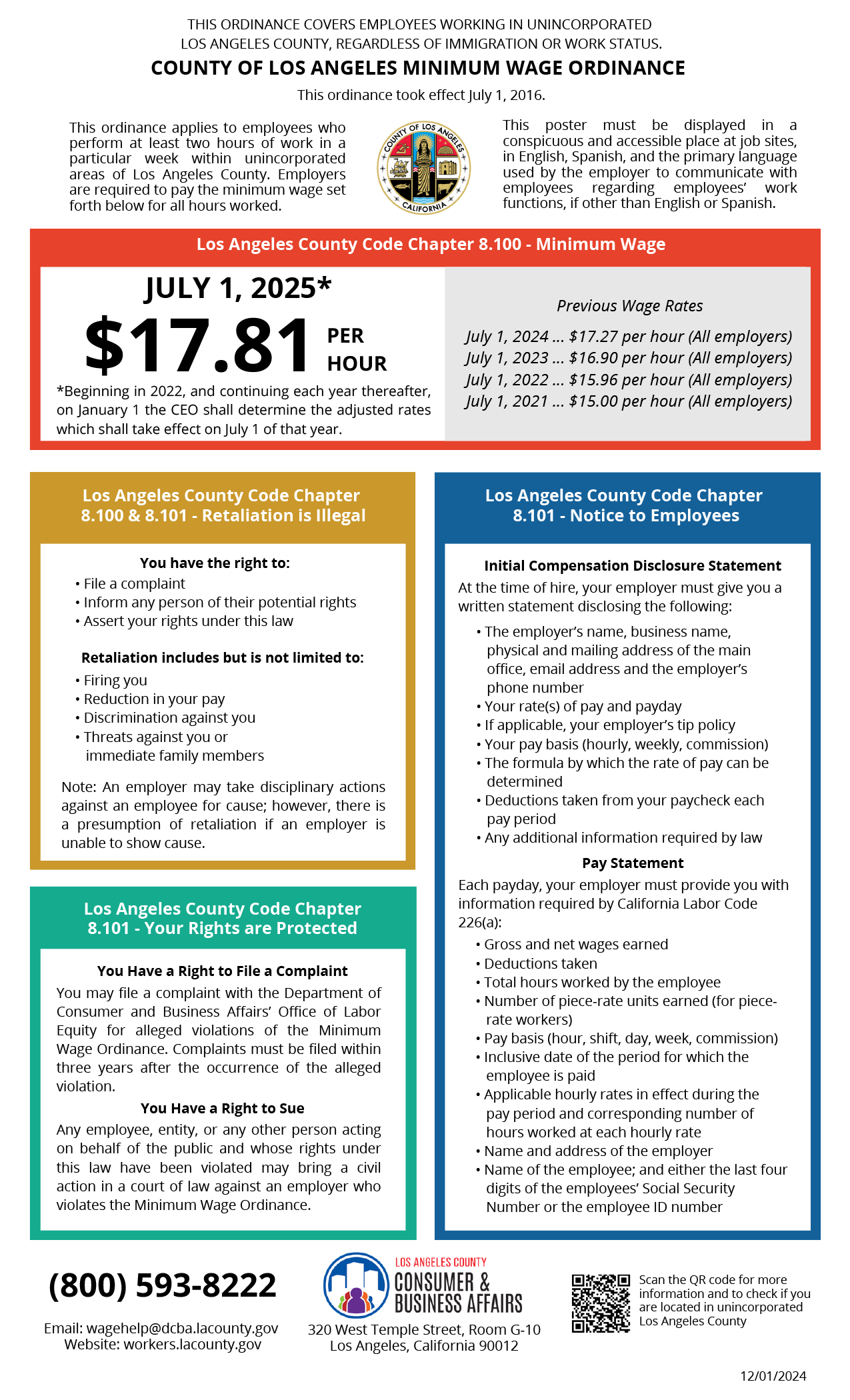 California Los Angeles County (unincorporated areas) Minimum Wage Poster