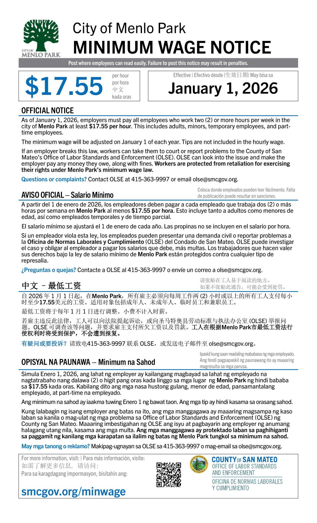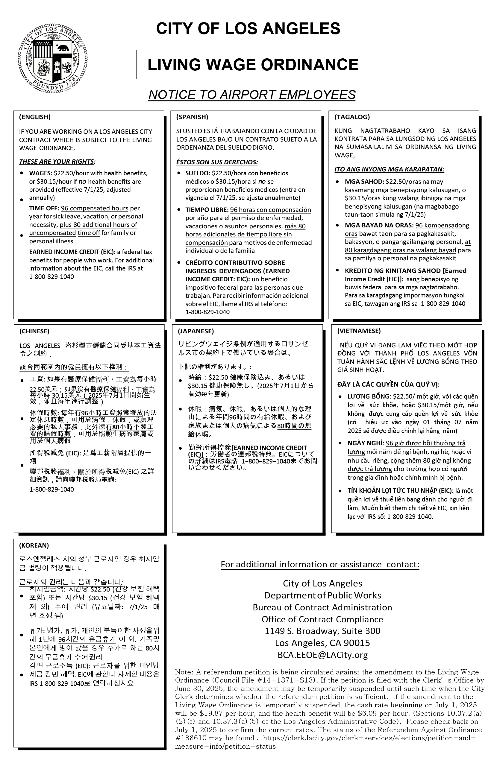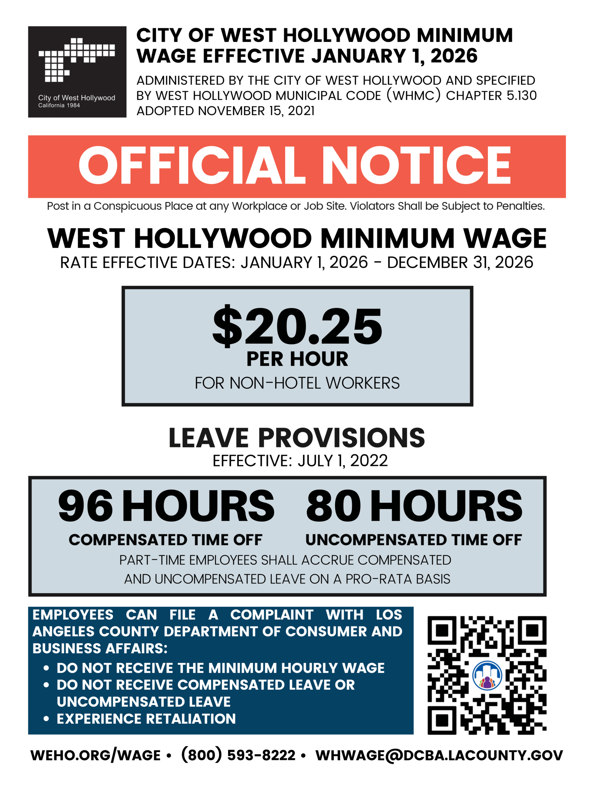 California Los Angeles County (unincorporated areas) Minimum Wage Poster