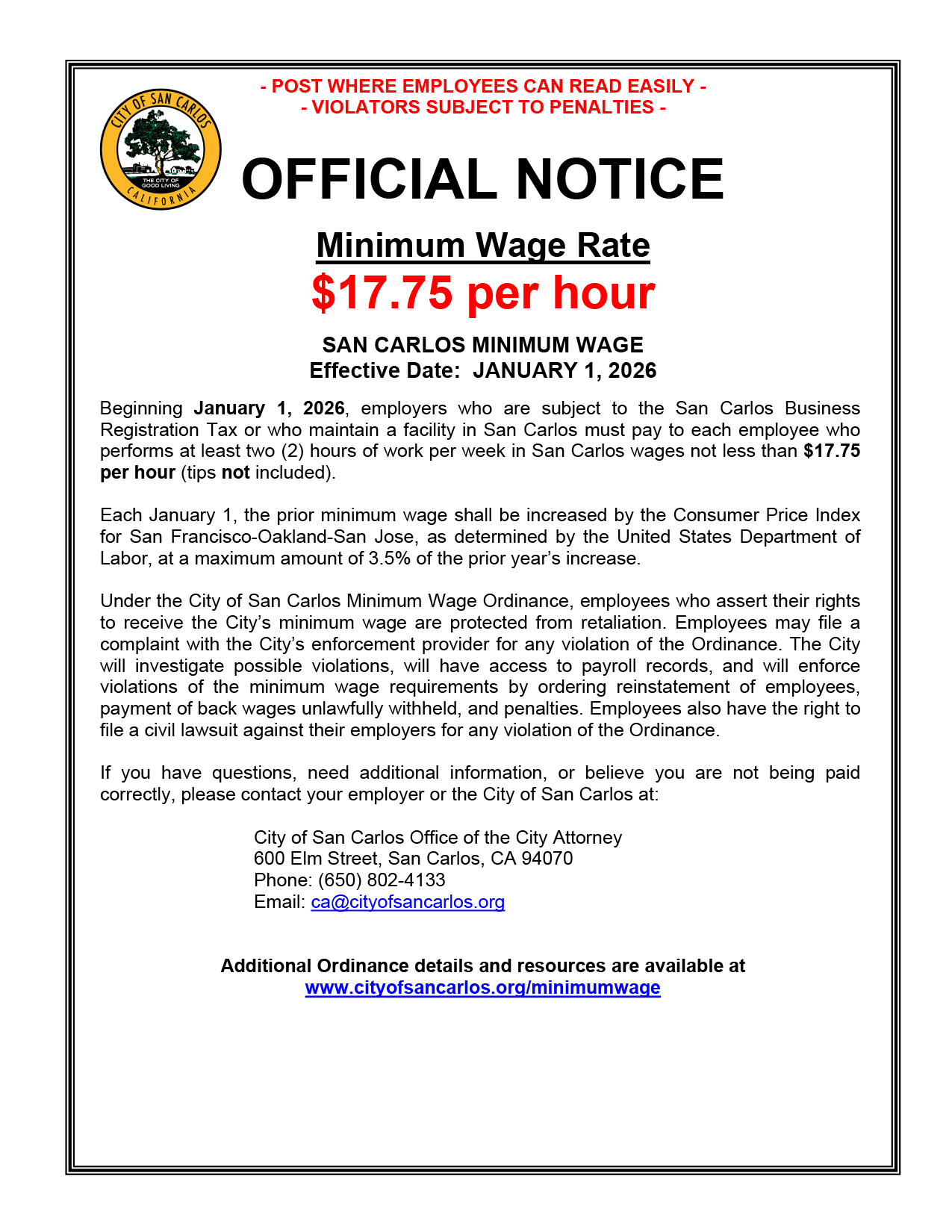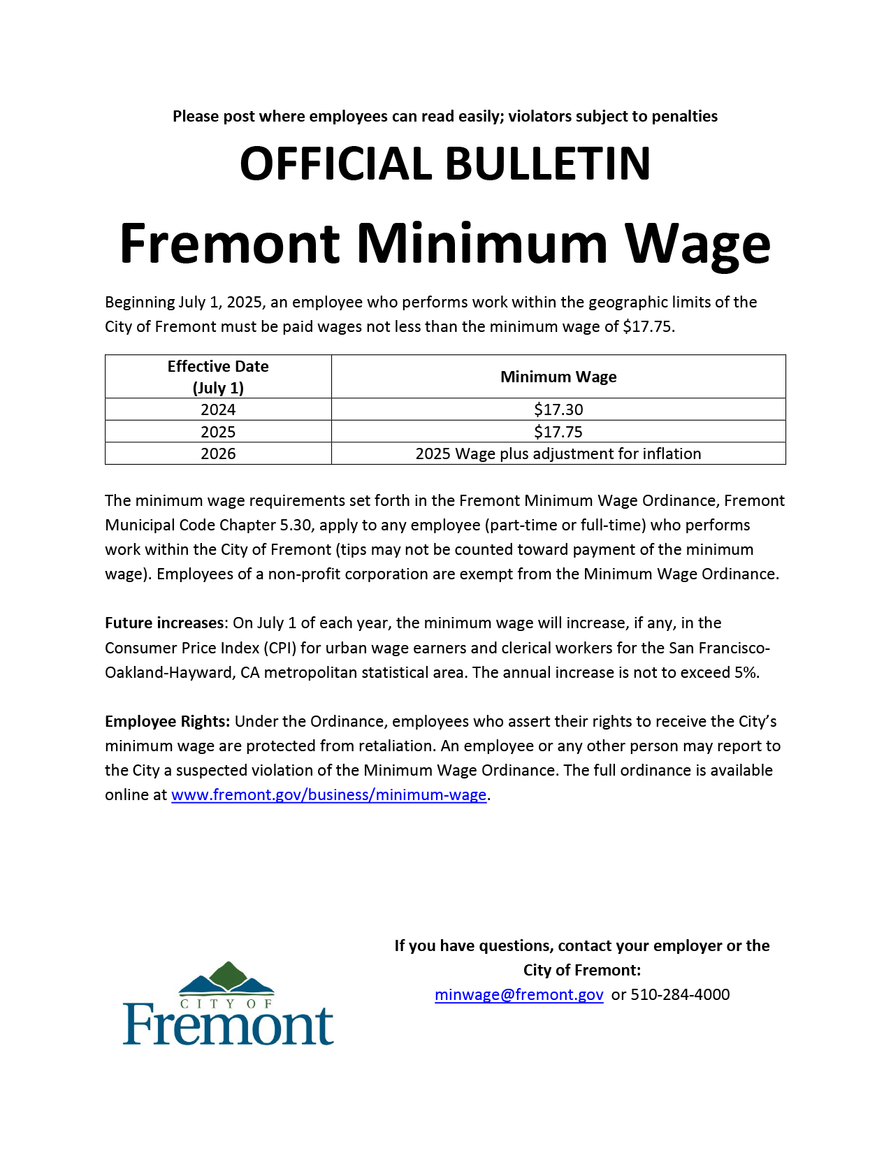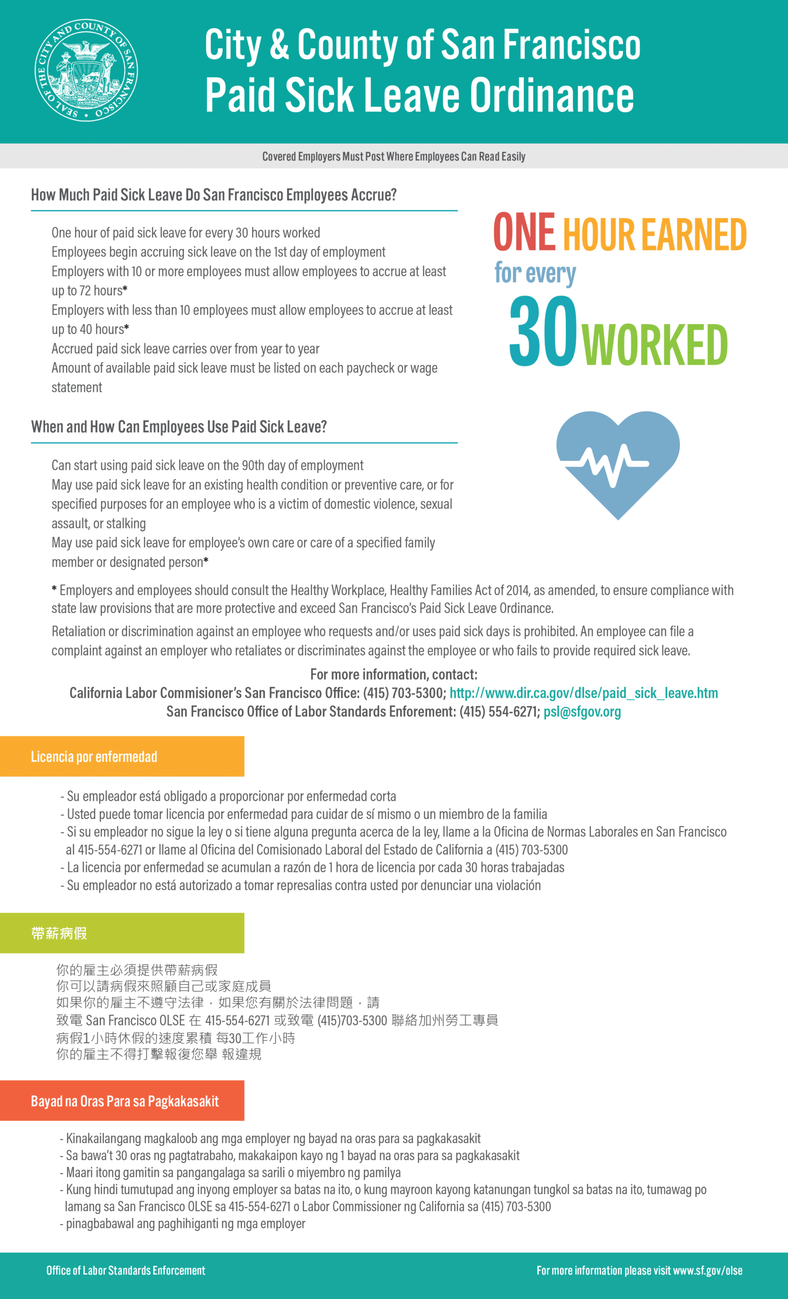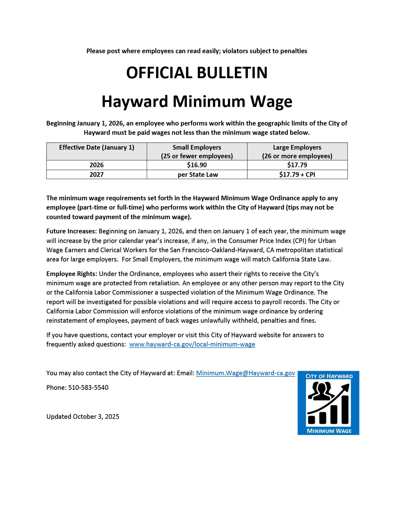 California Oakland City Municipal Code Poster (Minimum Wage; Paid Sick Leave; Service Charge)