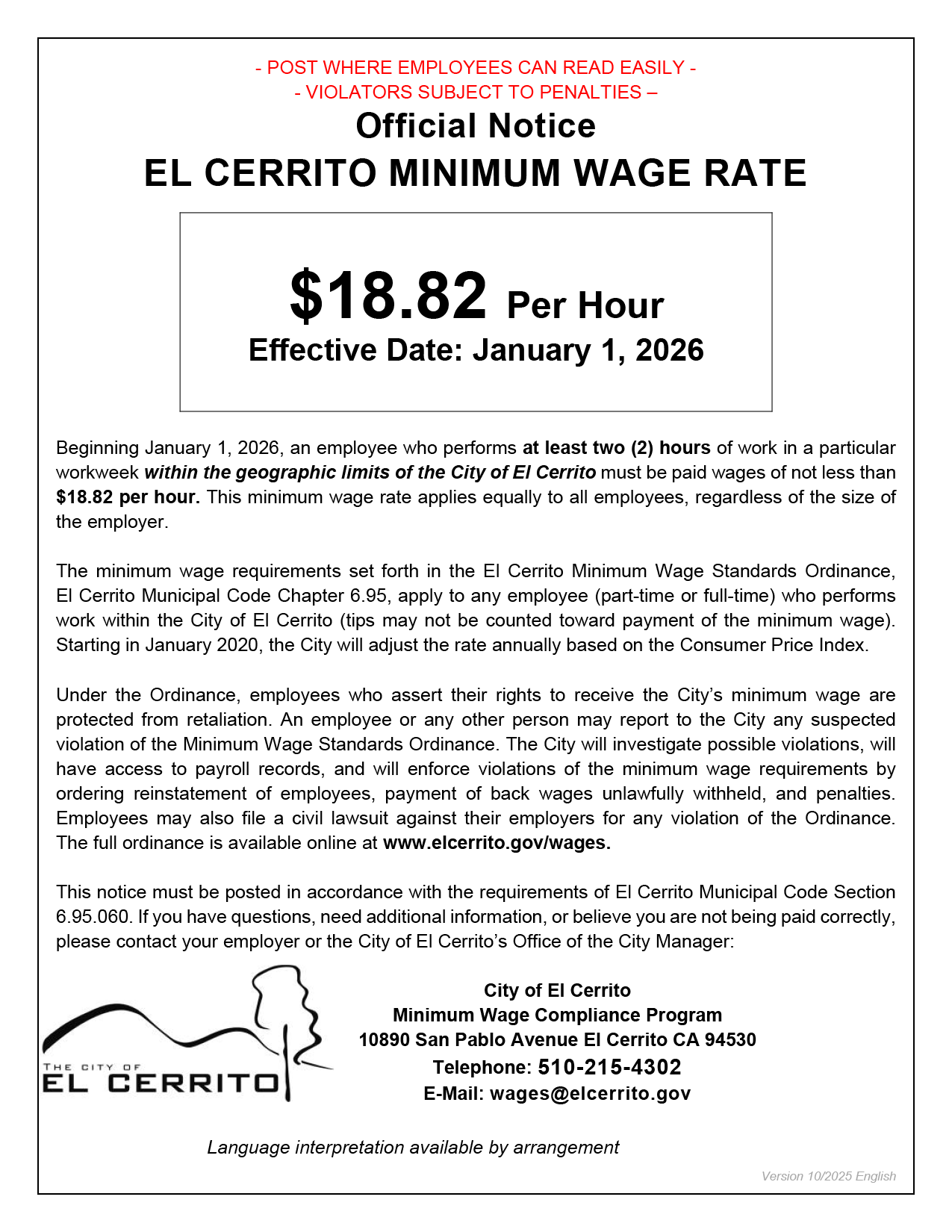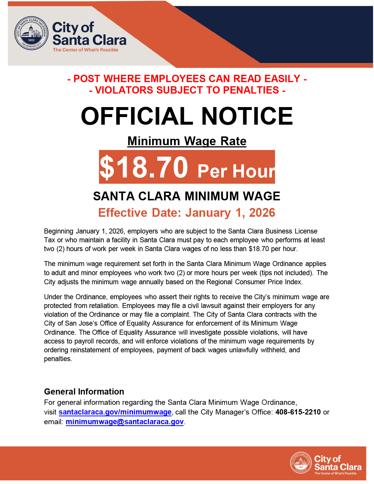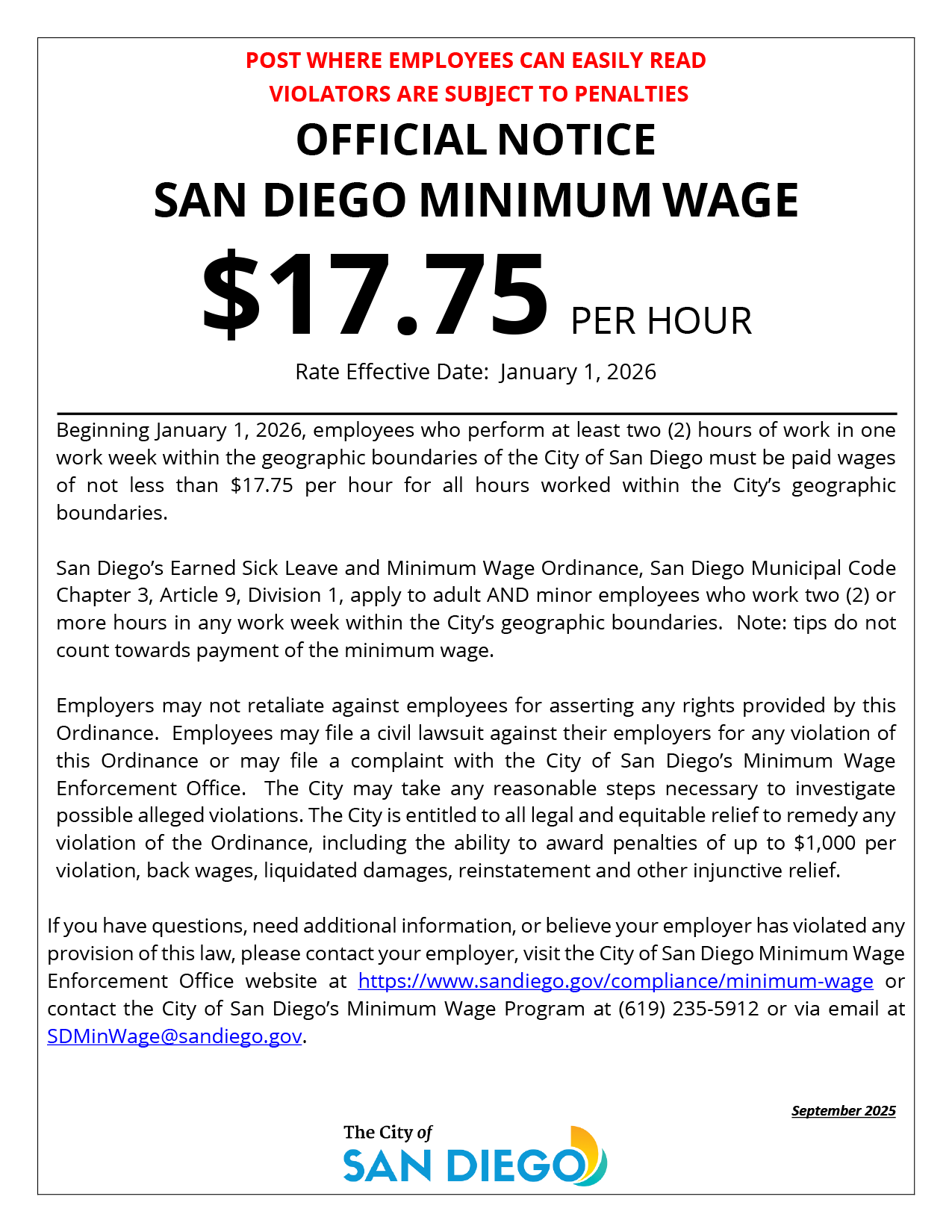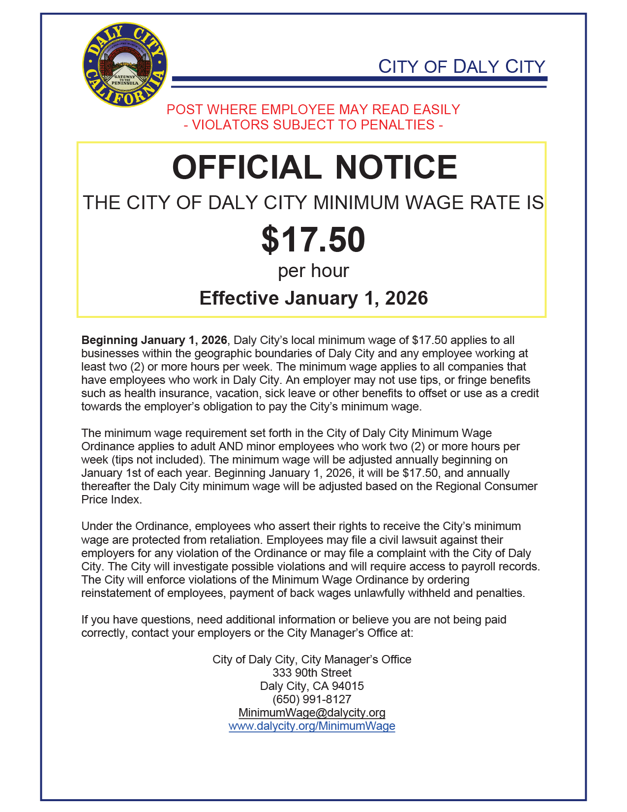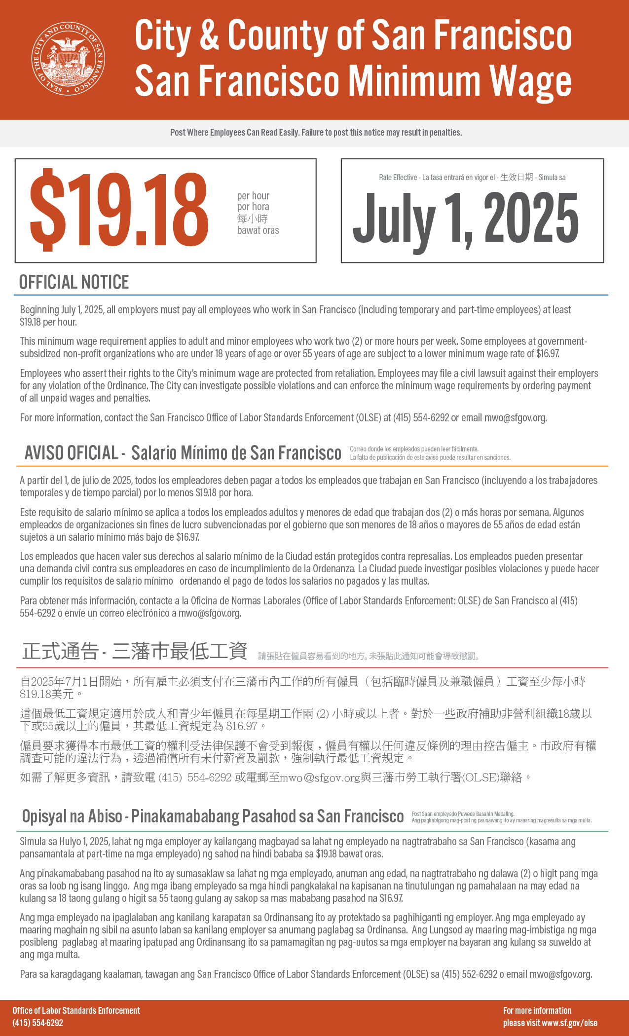 California Oakland City Municipal Code Poster (Minimum Wage; Paid Sick Leave; Service Charge)
