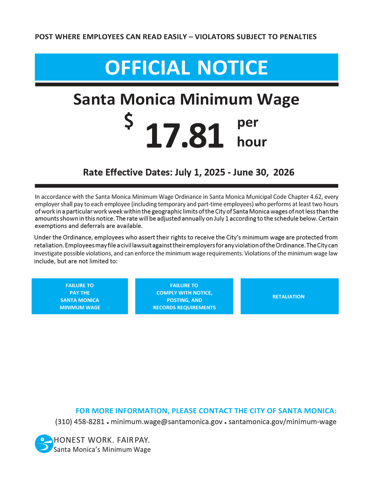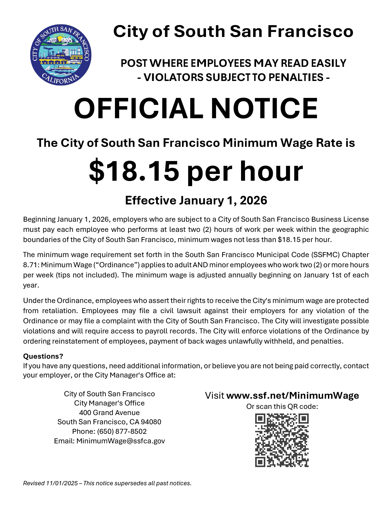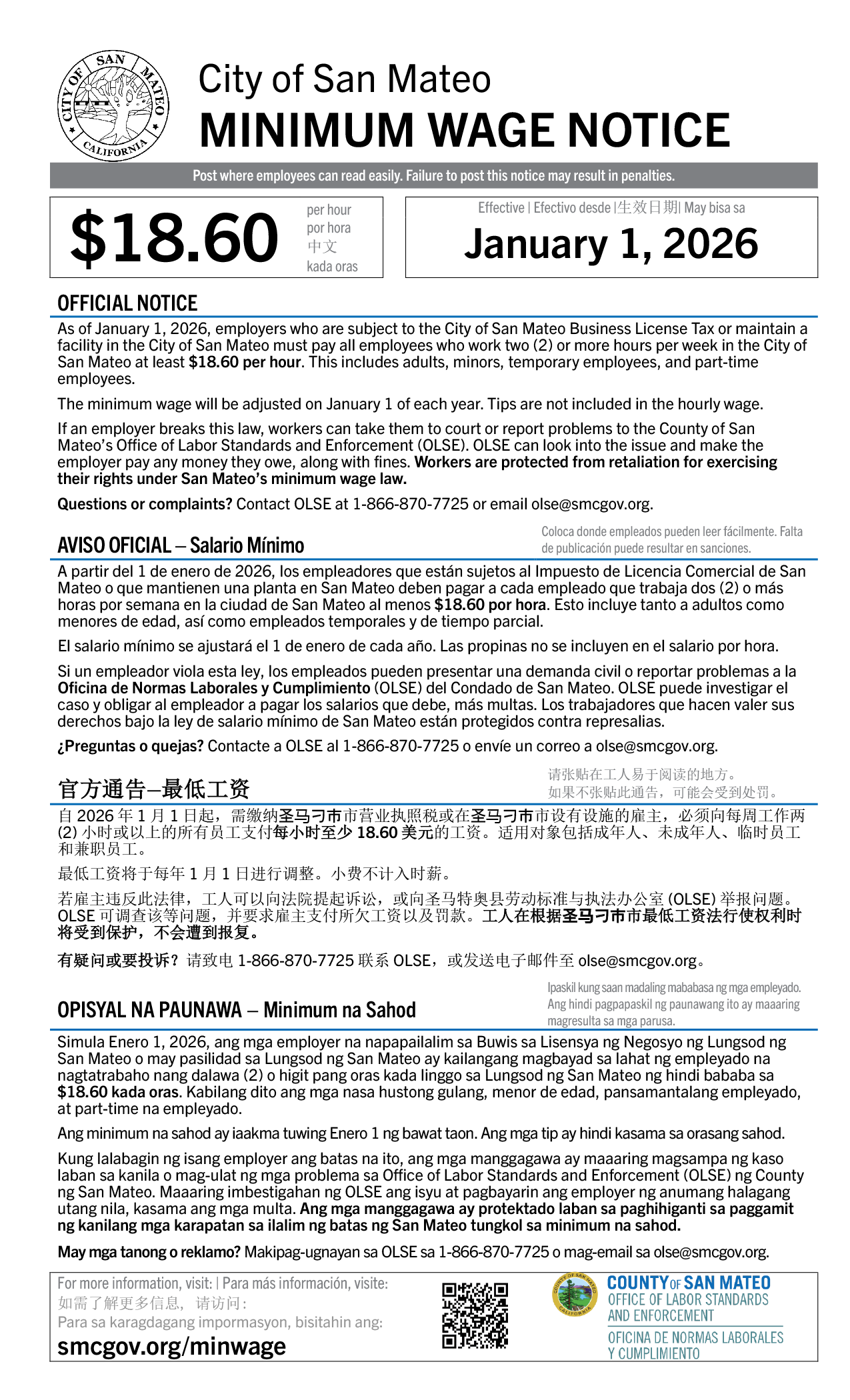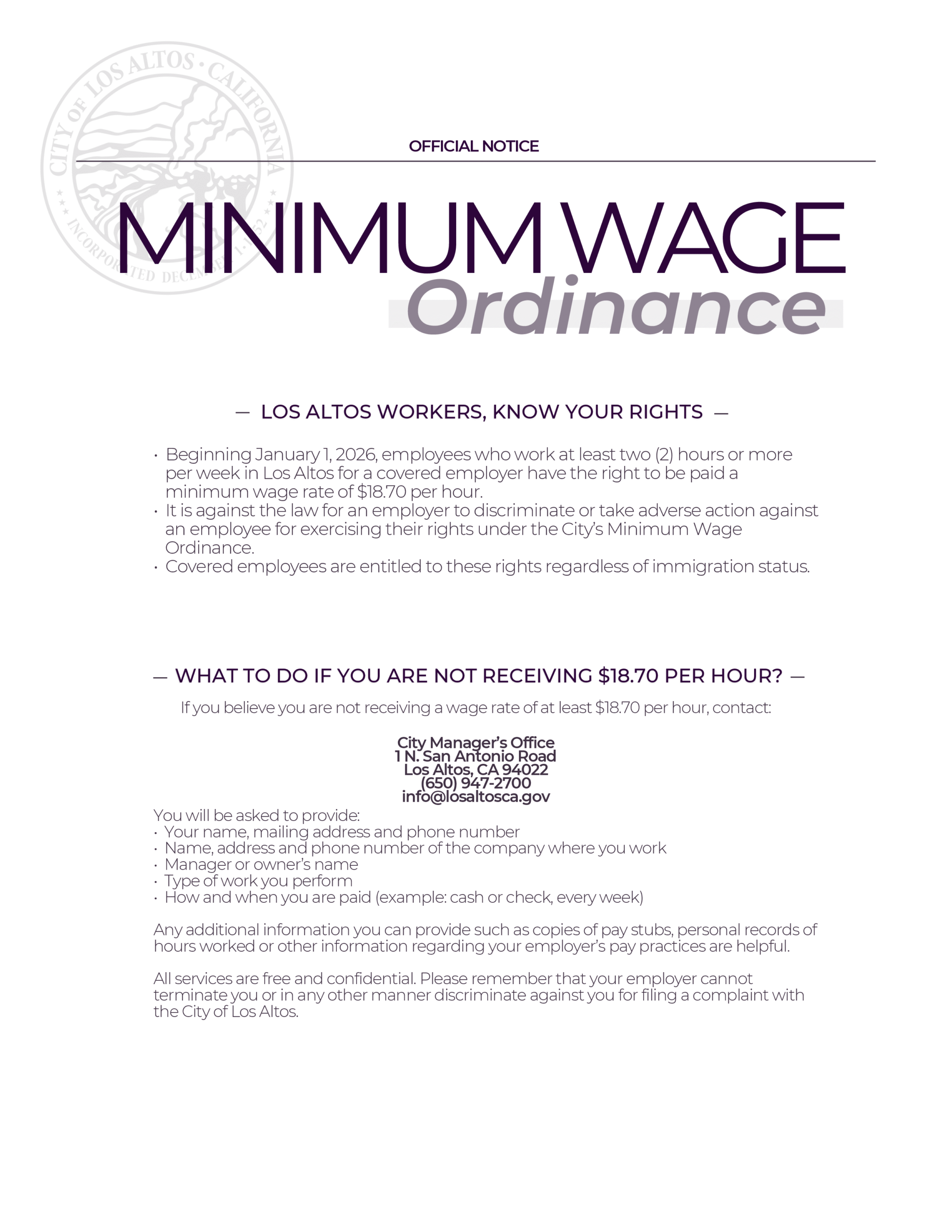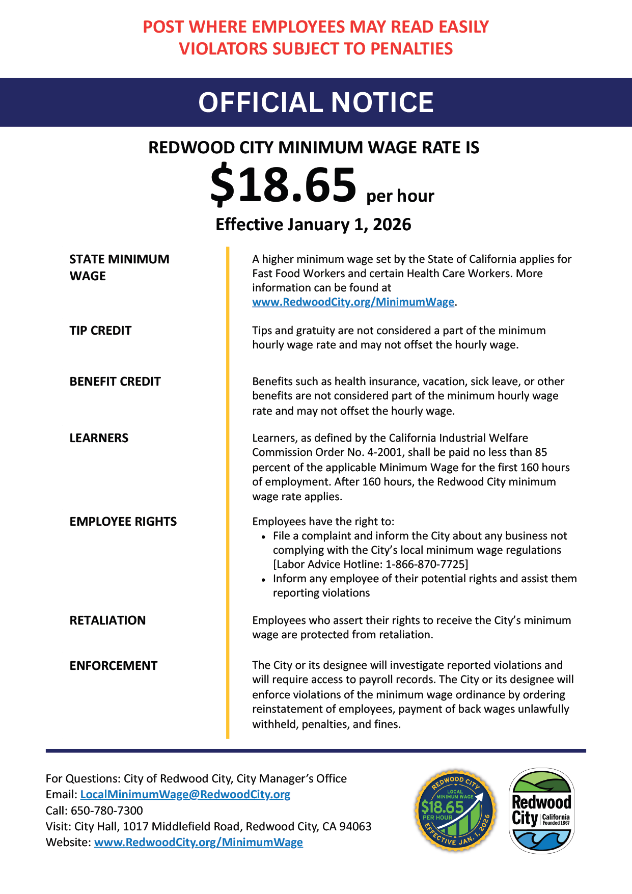 California Oakland City Municipal Code Poster (Minimum Wage; Paid Sick Leave; Service Charge)