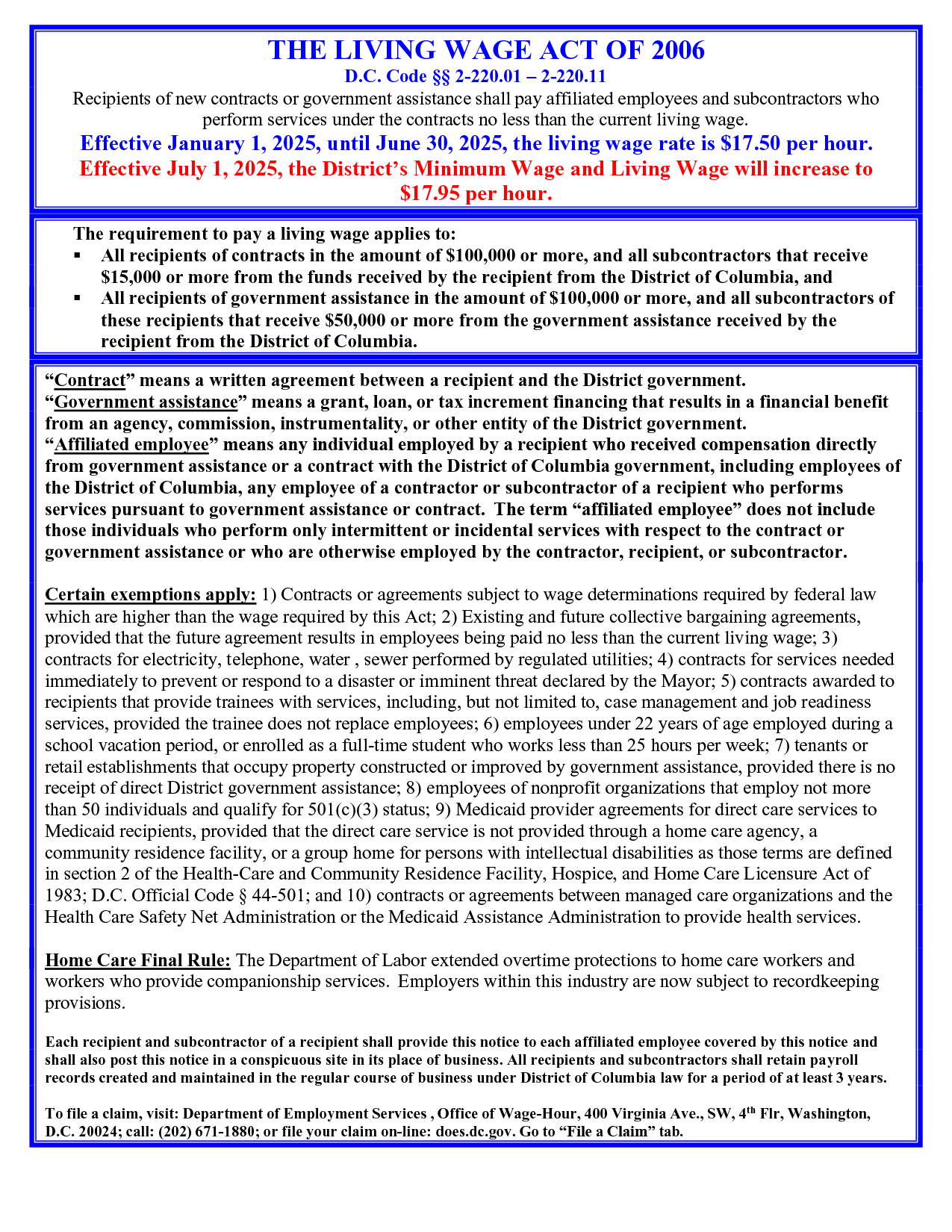 District of Columbia Building Service Employees Minimum Work Week Act Notice