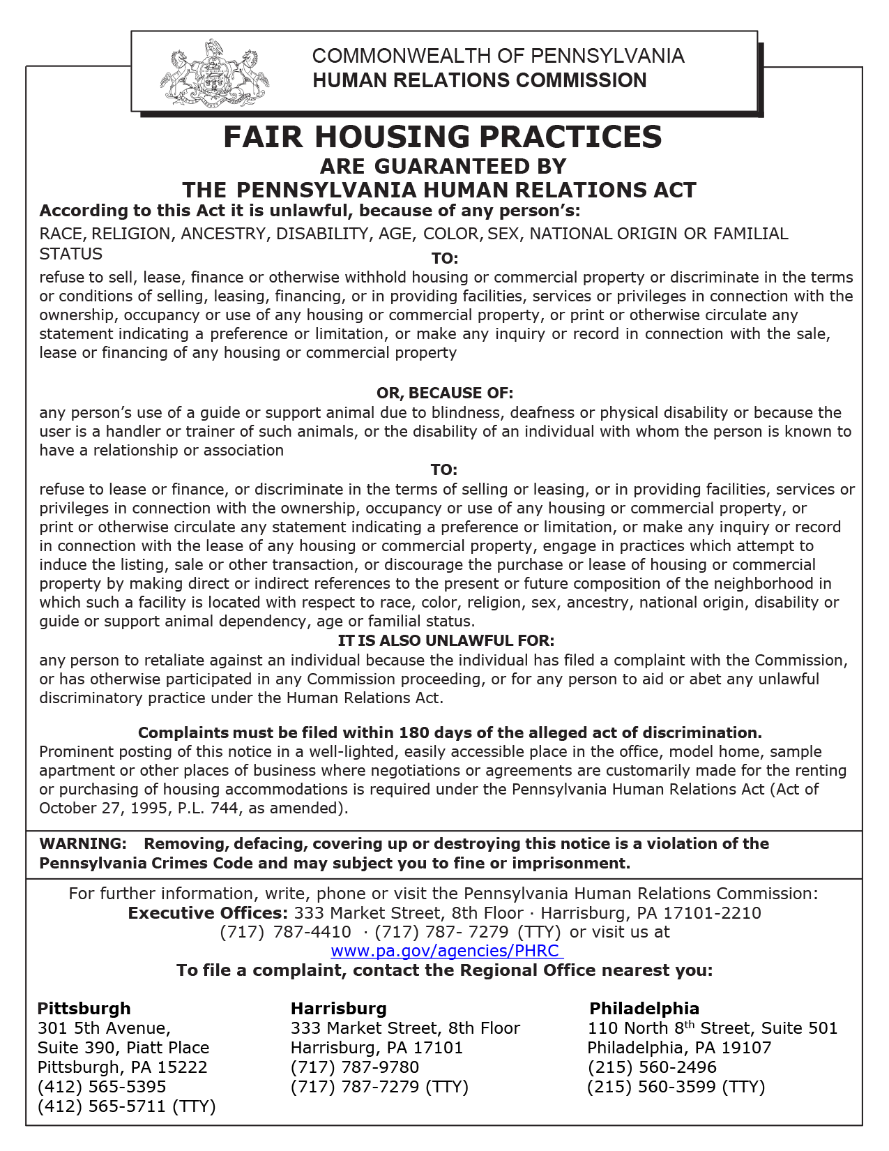 Pennsylvania Fair Lending Practices Poster