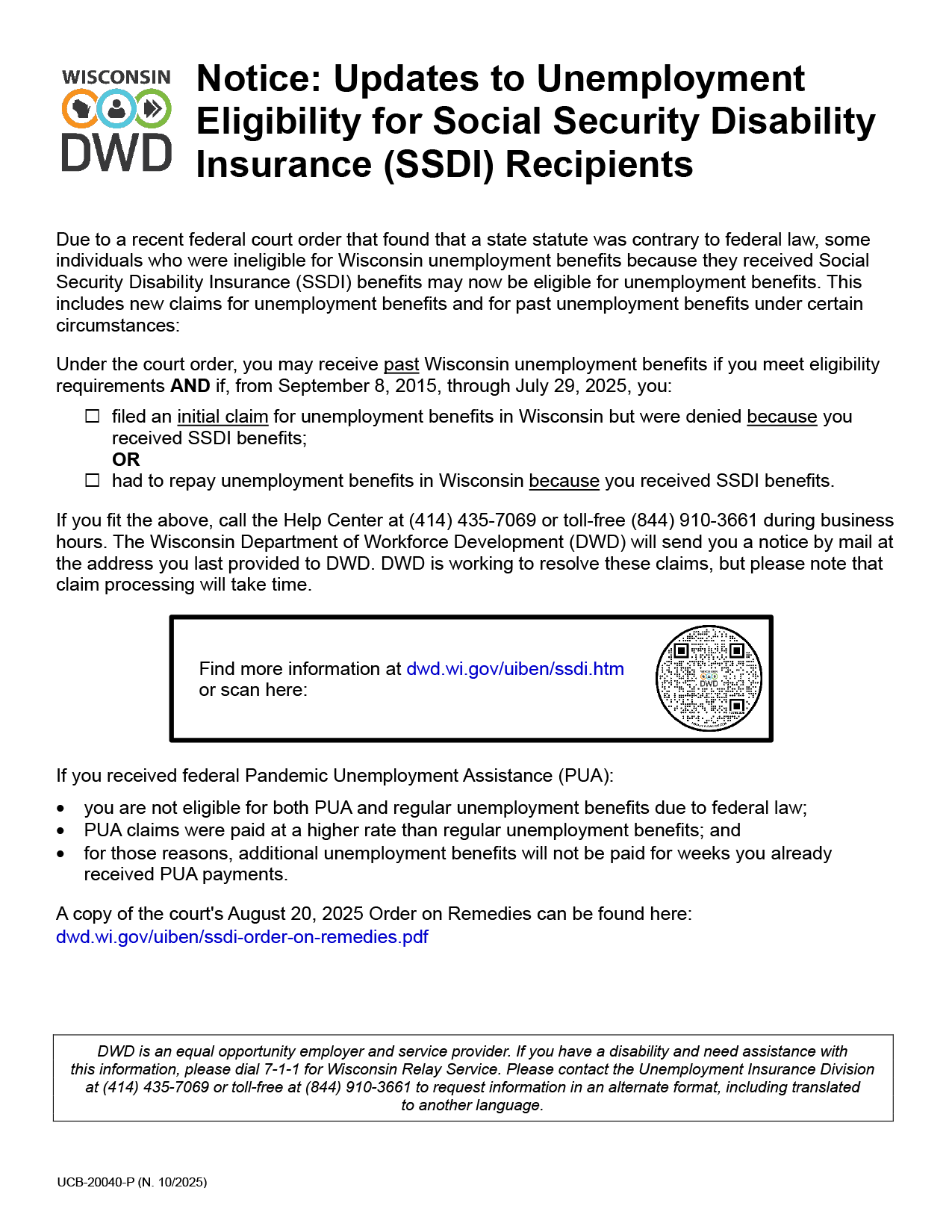 Wisconsin Unemployment Eligibility for Social Security Disability Insurance (SSDI) Recipients (english)