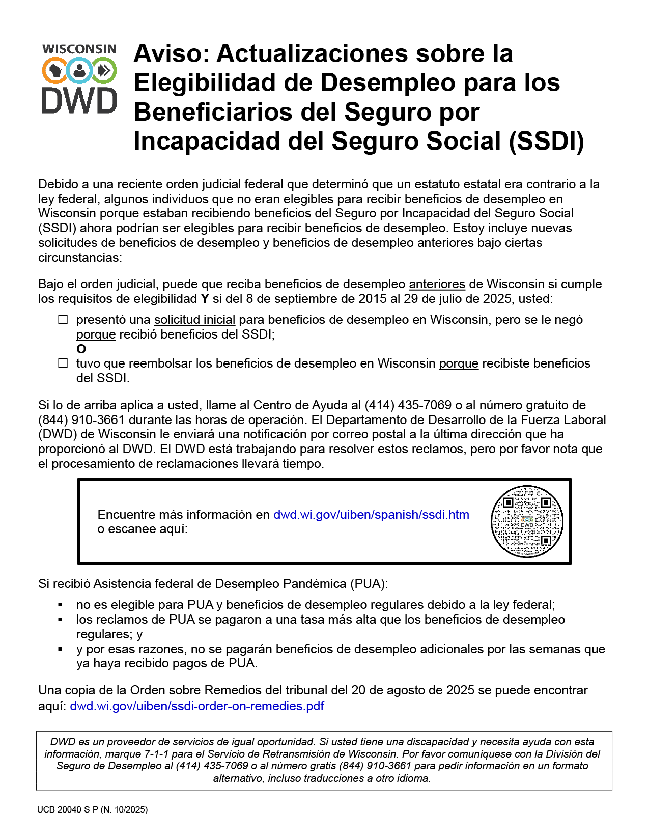 Wisconsin Unemployment Eligibility for Social Security Disability Insurance (SSDI) Recipients (español)