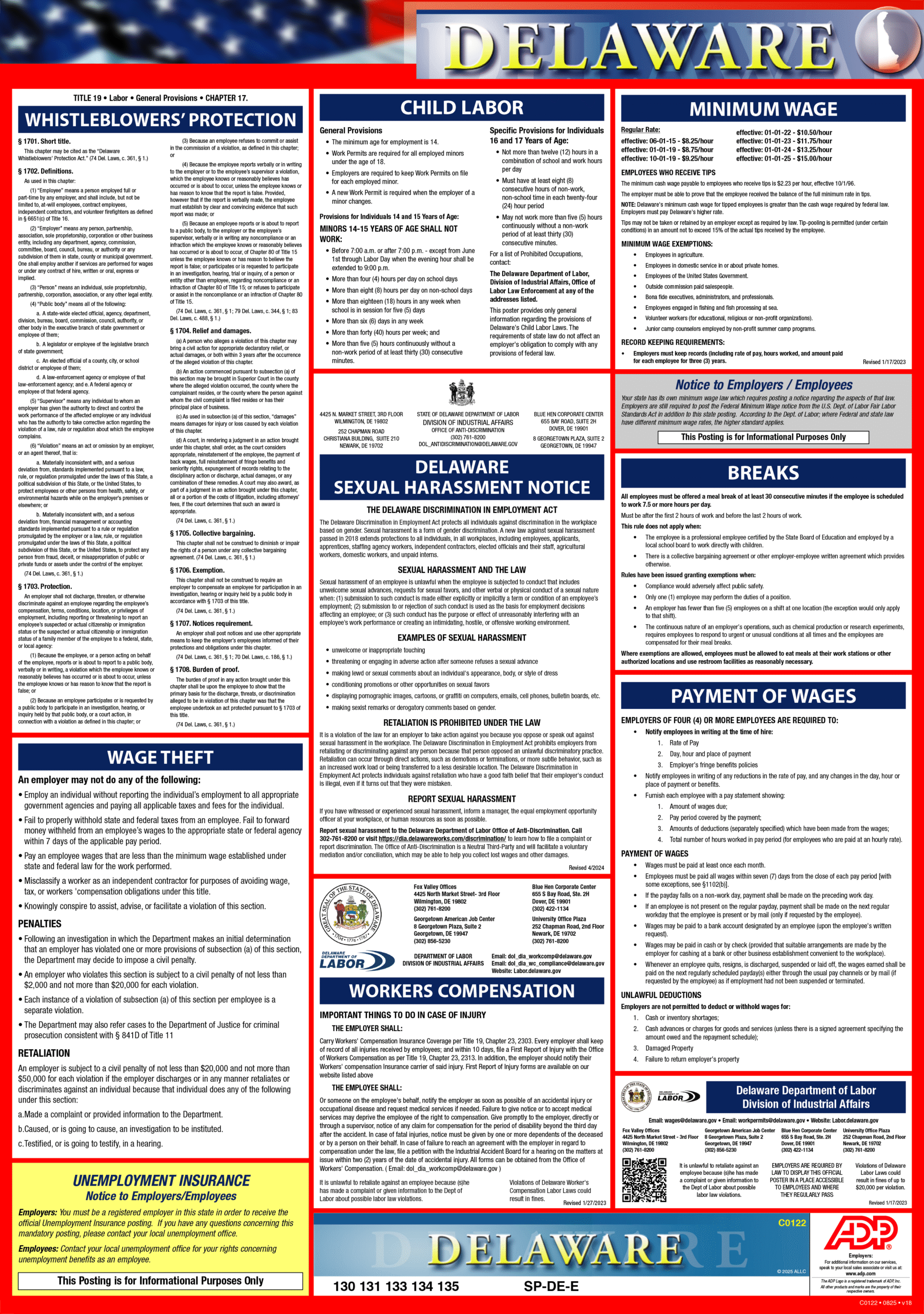 Combined Posting (Minimum Wage, Payment of Wages, Breaks, Child Labor, Discrimination, and Workers Compensation)