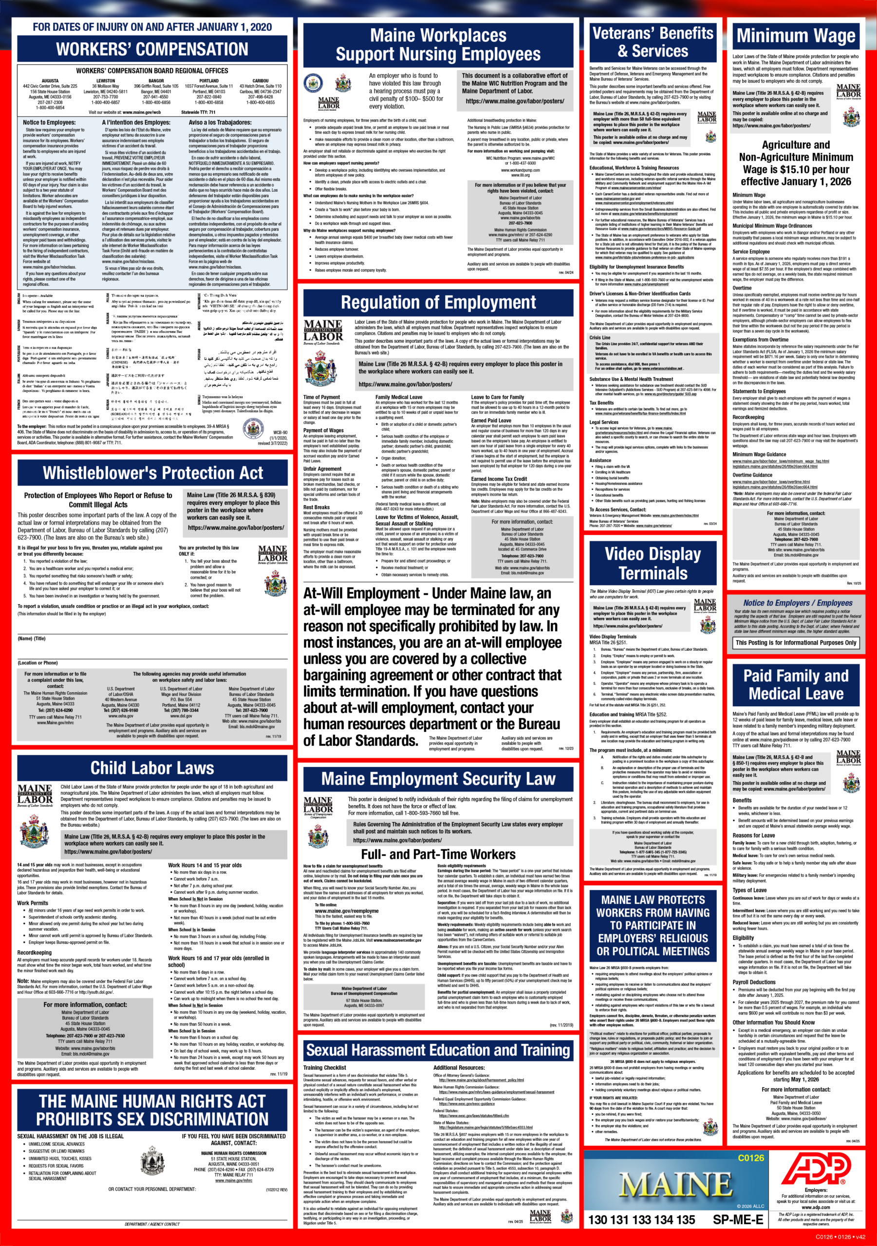 • Regulation of Employment - Posting covers the following: Time of Payment, Rest Breaks, Mandatory Overtime, Payment of Wages, Unfair Agreement, Leave for Victims of Violence, and Family Medical Leave Requirements